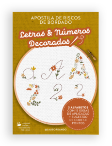 Os riscos da apostila são autorais, bordáveis, com sugestão de cores e pontos e uso comercial liberado, caso você queira vender os seus bordados.